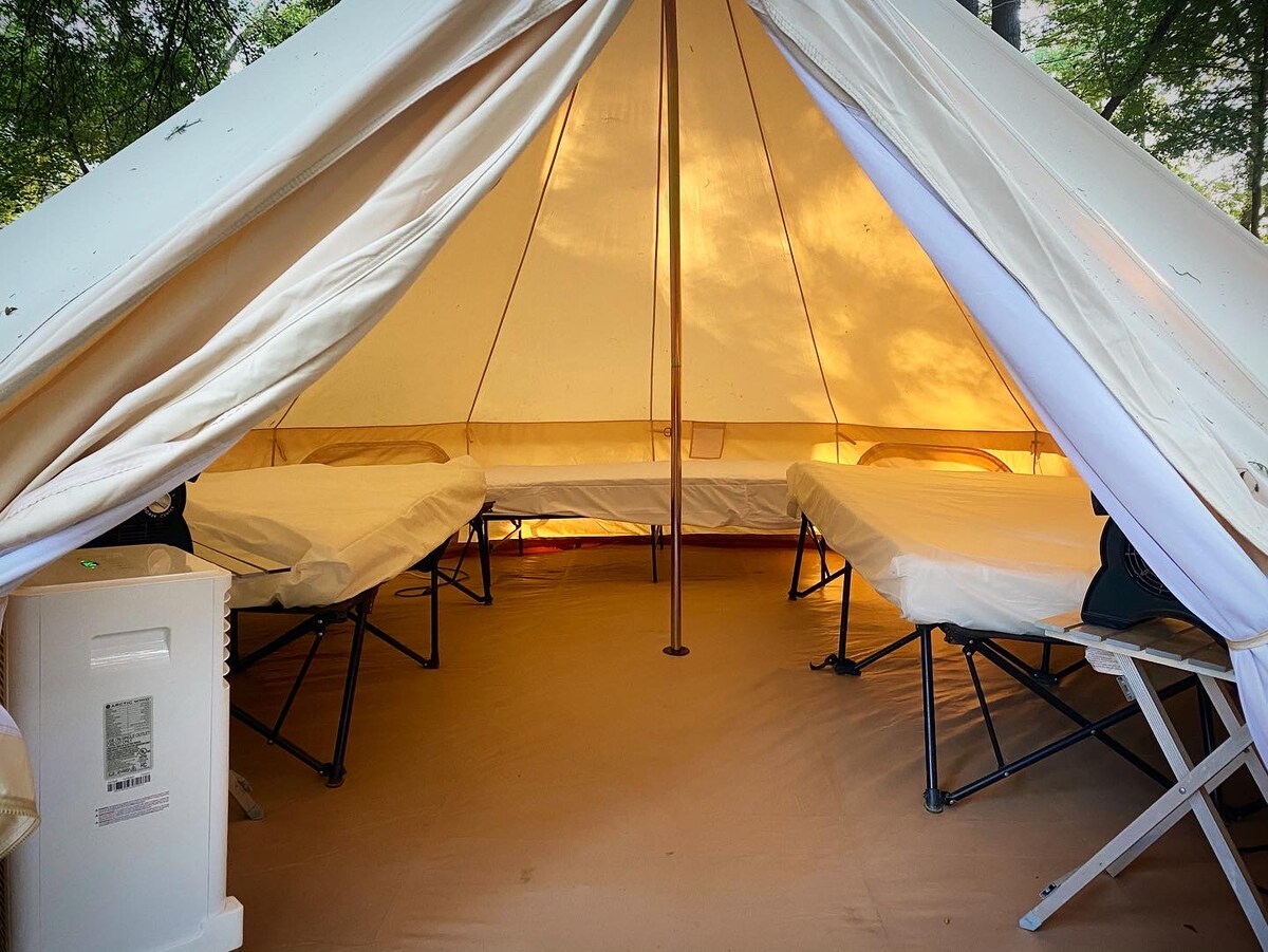 Es geht nicht viel besser, als in einem brandneuen Glamping-Zelt am Ufer des Flusses Guadalupe mit weicher Schaumstoffmatratze, Klimaanlage und leistungsstarken Ventilatoren zu schlafen, damit du dich wohlfühlst und kühl bleibst! Wir glauben, dass Camping Spaß machen sollte, nicht elend und heiß! Warum die Nacht wegschwitzen, wenn du eine großartige Option hast, um in einem unserer klimatisierten Glamping-Zelte einen erholsamen Schlaf zu finden! Du wirst Son's Guadalupe absolut lieben, die Aussicht auf die klaren Guadalupe R & die hoch aufragenden Kalksteinfelsen sind atemberaubend!