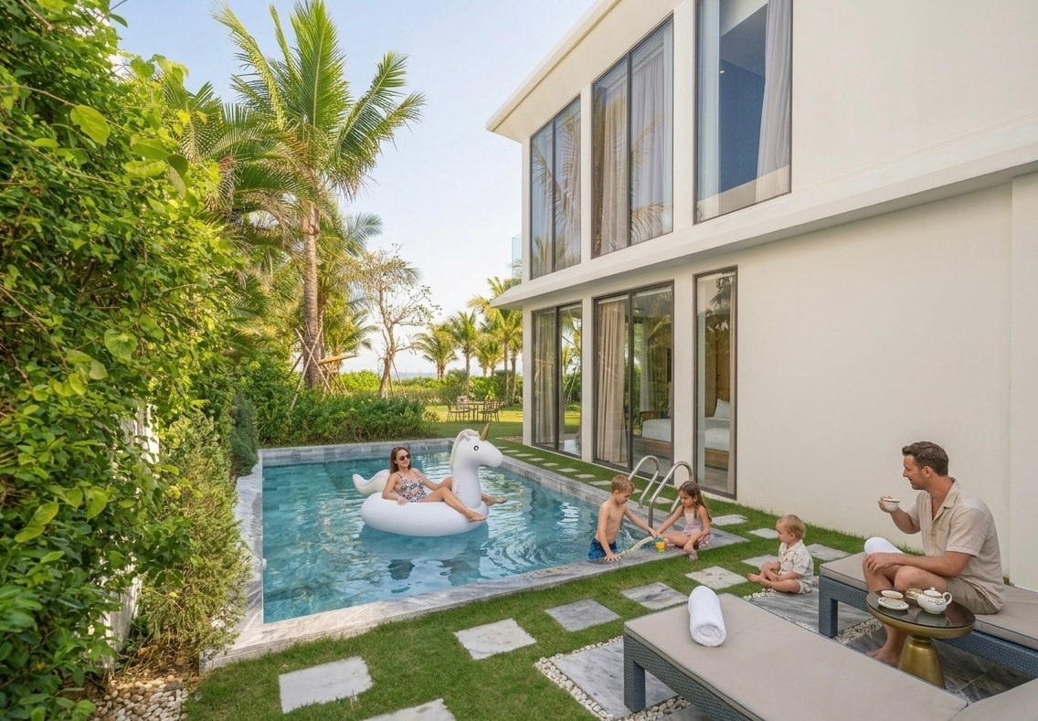 Willkommen in deinem ruhigen Gartenrefugium in Đà Nẵng! Unsere geräumige Villa mit 3 Schlafzimmern befindet sich im exklusiven Resort „Ocean Villa“, das perfekt zwischen der Altstadt von Hội An und der Innenstadt von Đà Nẵng gelegen ist, was es zu einem idealen Ausgangspunkt macht, um das Beste von Zentralvietnam zu erkunden. Die von einem großen, üppigen Garten umgebene Villa bietet eine ruhige und entspannende Atmosphäre, die perfekt für Familien, Paare oder Freunde ist, die einen komfortablen Kurztrip suchen.