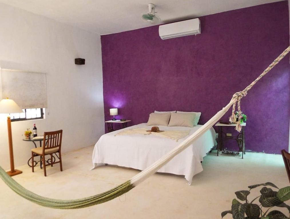 Komfortables Zimmer in einem charmanten Bed & Breakfast mit einer ausgezeichneten Lage und nur ein paar Blocks von den Touristenattraktionen der Innenstadt von Merida entfernt. Das Zimmer verfügt über 1 Doppelbett, Hängematte, Klimaanlage, Klimaanlage, Ventilator, Dusche mit heißem Wasser, Smart-TV und eine gemütliche sehr mexikanische Dekoration. Wir beinhalten auch ein Frühstück, damit du deinen Tag sehr gut beginnen und alle Aktivitäten und Attraktionen der Stadt Mérida und des Bundesstaates Yucatan genießen können.