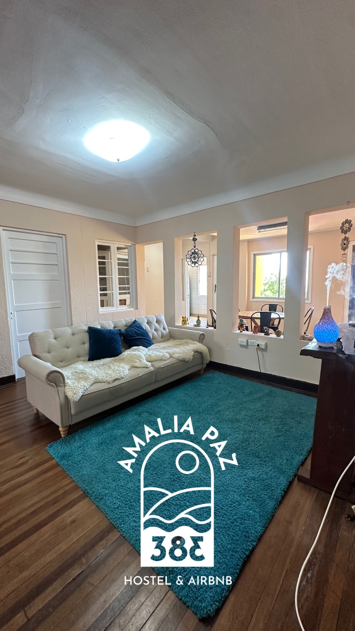 Entdecke unser geräumigstes und hellstes Zimmer. Es verfügt über 6 Einzelbetten in Kabinen und ein Sofa für deinen Komfort. Jedes Bett hat seinen eigenen Stecker. Es hat Zugang zu 5 geräumigen und modernen Gemeinschaftsbädern, alle mit Dusche und heißem Wasser. Es hat Zugang zu einer sehr gut ausgestatteten Küche und unserer schönen Terrasse mit Quincho und großem Tisch. Wir haben einen Wäscheservice (kostenpflichtig) und eine Gepäckaufbewahrung (kostenlos).