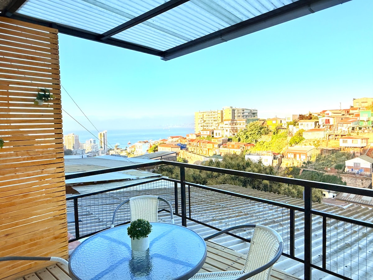 Die Wohnung befindet sich in einem der ältesten Hügel im Hafen von Valparaiso. Warmer und klassischer Stil mit modernen Akzenten. Das Viertel Patrimonial del Cerro Cordillera liegt in der Nähe von Restaurants, Aussichtspunkten, Museen und Aufzügen. Sie befindet sich im obersten Stockwerk eines umgebauten Altgebäudes, das einen einzigartigen Blick auf den Pazifik hat, ideal, um Sonnenuntergänge auf der Terrasse zu beobachten und die Bewegung der Boote im Hafen zu beobachten.