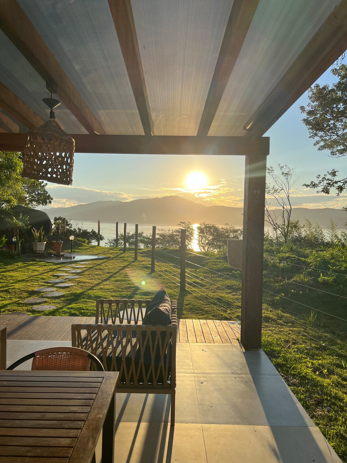 Natürliches Observatorium hoch auf dem Berg mit einer Architektur in Symbiose mit der Natur. Atemberaubende Aussicht auf die Lagune und das Meer, mit Sonnenaufgang und Mondaufgang. Fogeira, um die Sterne zu sehen. Komfort mit Raffinesse und Privatsphäre. Umgeben vom Atlantischen Wald, Wasser des Wasserfalls, ein natürlicher Pool mit Quellwasser. Zugang nur mit dem Boot (schöne Route durch die Gewässer der Lagune – ca. 15 Min.) oder über den Wanderweg. Checke persönlich ein. Ein Paradies erwartet dich!