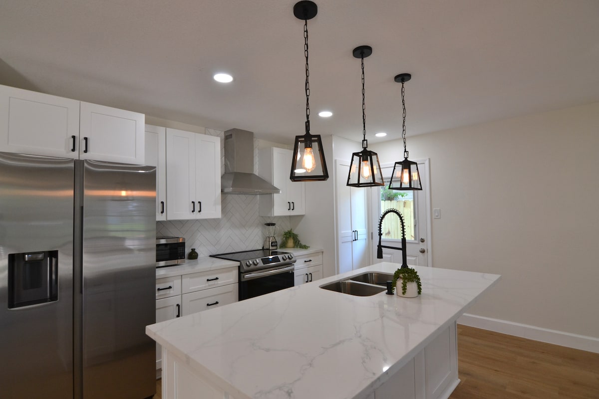 „Die ganze Gruppe wird in diesem zentral gelegenen Haus einen einfachen Zugang zu allem genießen, was Houston zu bieten hat. „MOON LIGHT BY THE BAY“ Bungalow bietet Platz für 6 Gäste, 2 PARKPLÄTZE (kostenlose Parkplätze an der Straße) und einen offenen Küchen-/Wohnbereich. Perfekt für die Unterhaltung von Familie und Freunden. Bietet WLAN, einen Smart-TV und einen Sitzbereich im Freien. Genieße deinen Aufenthalt, indem du dich in der Dusche des Hauptbadezimmers entspannst und dich auf der Couch mit deinem Lieblingsbuch entspannst.“