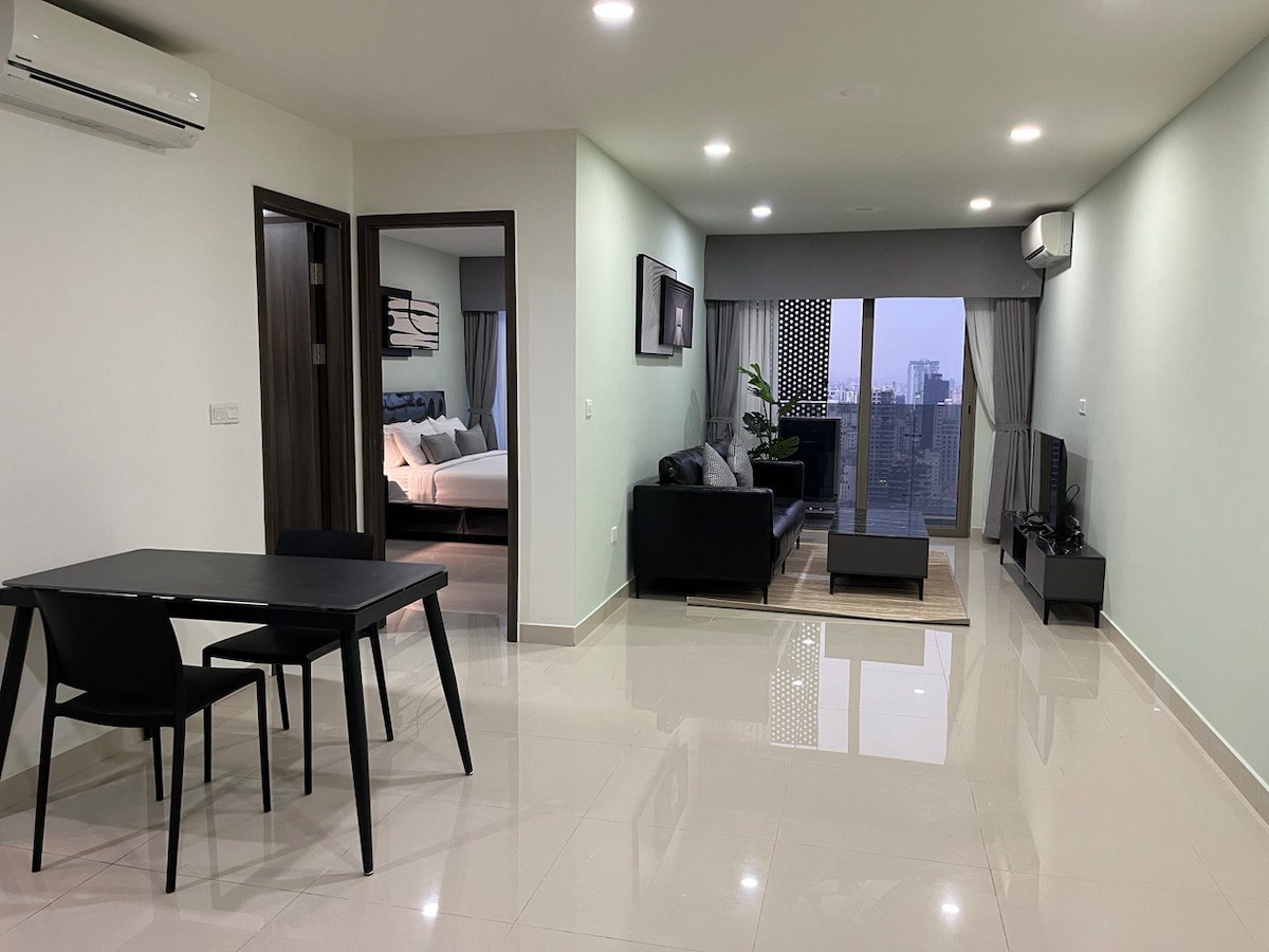 This special property is in a great location in the city center. Opposite the apartment is a large shopping mall and the Sofitel five-star hotel, which is convenient for you to plan your visit. -Equipped with Samsung smart TV -Equipped with kitchen , refrigerator and kettle -Equipped with washing machine and clothes hanger -Phnom Penh's highest sky bar - Celeste and the rooftop infinity pool overlooking the Mekong River -Equipped with gym -Adapters provided Equipped with basic toiletries