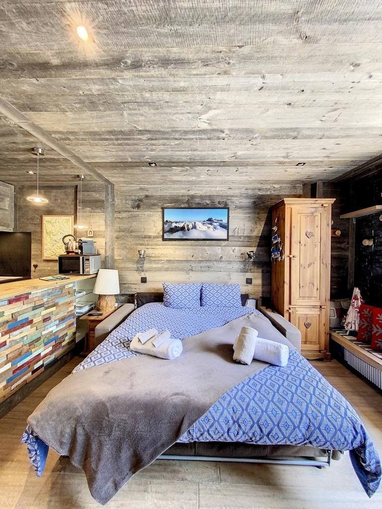Lassen Sie Ihr Auto auf dem Parkplatz und genießen Sie den Ort zu Fuß! Neben einem öffentlichen SPA, dem Carrefour Montagne, den Skipisten in 100 m Entfernung, liegt dieses ruhige, nach Süden ausgerichtete Nest von 30 m2, das über einen Eingang/Skiraum, ein kleines Schlafzimmer mit einem Bett von 140 x 190 cm, einen Nachttisch, einen Kleiderschrank, eine Küche mit Geschirrspüler, Waschmaschine, Mikrowelle, Nespresso-Maschine, ein Wohnzimmer mit Sofa, WLAN, einen Smart-TV mit Netflix und Orange, einen Südwestbalkon und gemachte Betten verfügt.