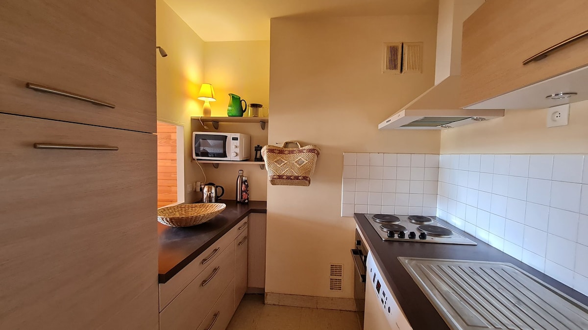 Charmantes Studio, Erdgeschoss am Fuße der Pisten, in einer ruhigen Residenz mit Parkplatz, Studio von 25 m2 für 2 Personen und maximal 1 Kind. Individueller Skiraum Sie haben: Einbauküche, Geschirrspüler, Kühlschrank, Herd, Backofen, Mikrowelle, Toaster, Nespresso-Kaffeemaschine, Raclette- und Fonduegeräte, Fernseher. Badezimmer mit Badewanne. Separates WC und Waschmaschine. Schlafsofa (80 x 190 cm), Doppelbett Mezzanine 140 x 190.