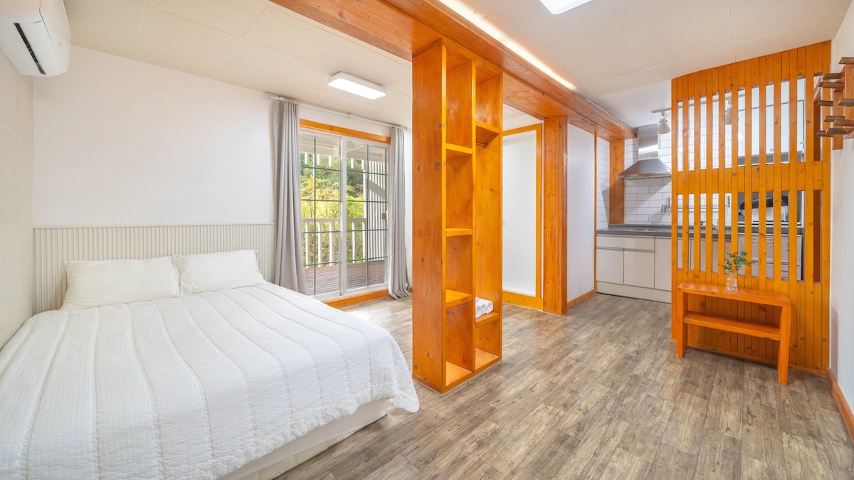 Es ist ein geräumiger Raum, der für mehrere Personen geeignet ist, und es ist eine Unterkunft mit guter Zugänglichkeit zum Meer, zu Restaurants, zu Convenience Stores und zu Märkten. Chodo-Strand, Hwajinpo-Strand und Hwajinpo-See sind alle zu Fuß erreichbar. Es umfasst 2 große Zimmer, ein großes Wohnzimmer, eine große Küche und eine Toilette. Mit dem kostenlosen Fahrradverleih von Hwajinpo können Sie den Daegok-Meerespark, die Kim Il-sung-Villa, die Lee Seung-man-Villa und das Ökomuseum besuchen.
