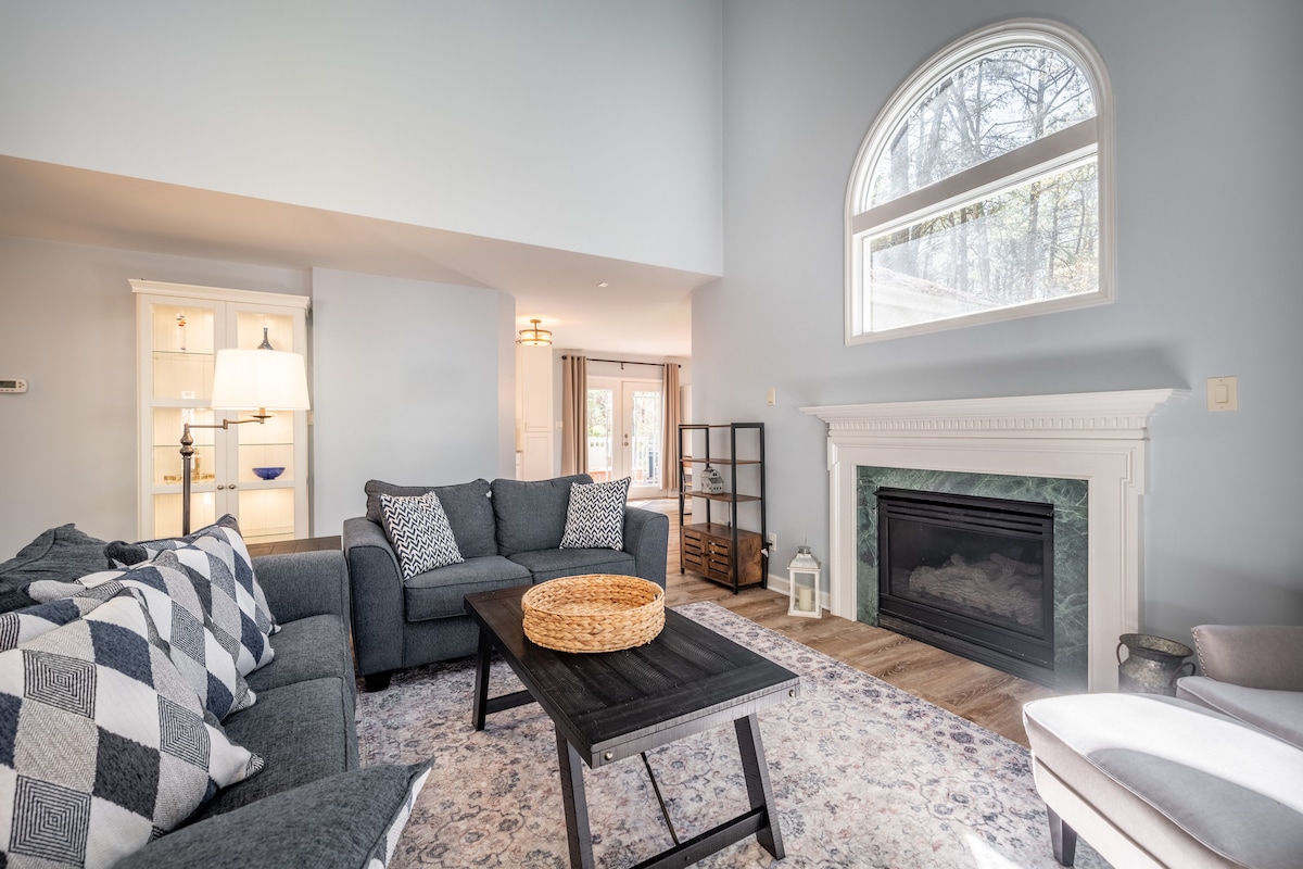 Wooded Luxury Minutes to UNC, Spa Bathroom, Patio