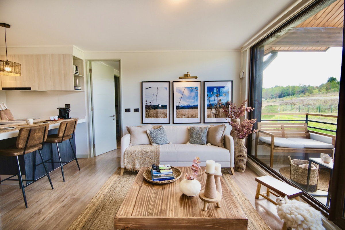 ZOME: Diese Kuppel ist eine Berghütte in Form einer Pyramide. Es verfügt über ein Doppelbett, eine Küche (Arbeitsplatte), einen kleinen elektrischen Ofen, einen Grill und eine große Terrasse mit Blick auf den Vulkan Osorno und Puntiagudo. Sie verfügt über eine Aerothermie-Anlage als Heizungs- und Klimaanlage, die über eine Fernbedienung gesteuert werden kann. Sie können eine exklusive heiße Badewanne an der Seite des Doms anfordern (gegen Aufpreis)