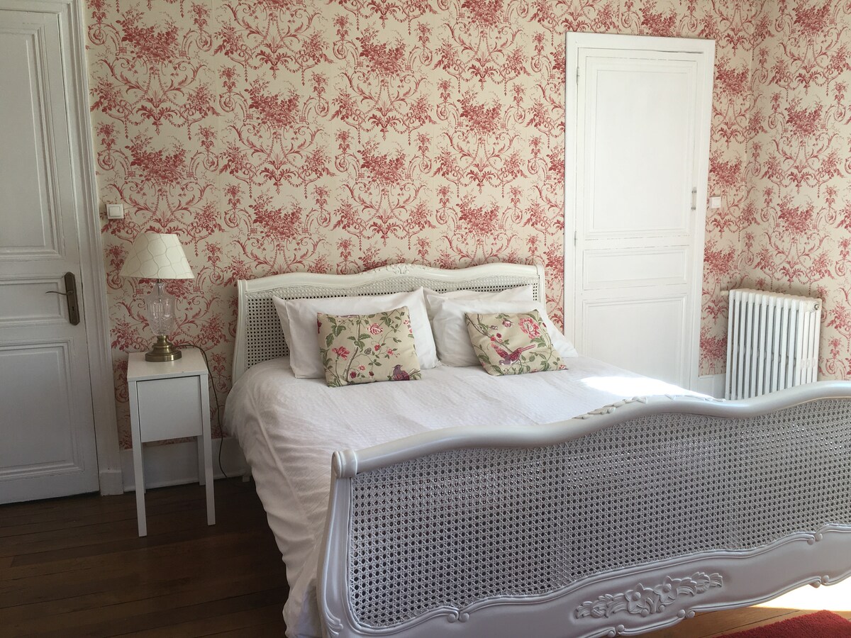 Ein ziemlich geräumiges und komfortables Zimmer in einem Reihenhaus mitten in Angoulême. Das Badezimmer und die Toiletten sind privat. Das Frühstück ist inbegriffen und wird in einem Gemeinschaftsbereich angeboten. Es ist eine Unterkunft in der Nähe der Sehenswürdigkeiten der Stadt (historisches Zentrum, Museen, Kinos, Restaurants usw.) und ideal gelegen, um an den verschiedenen Festivals teilzunehmen. Wir haben die Möglichkeit, Radfahrer und ihre Fahrräder auf der Route des Flusses Vélo willkommen zu heißen.