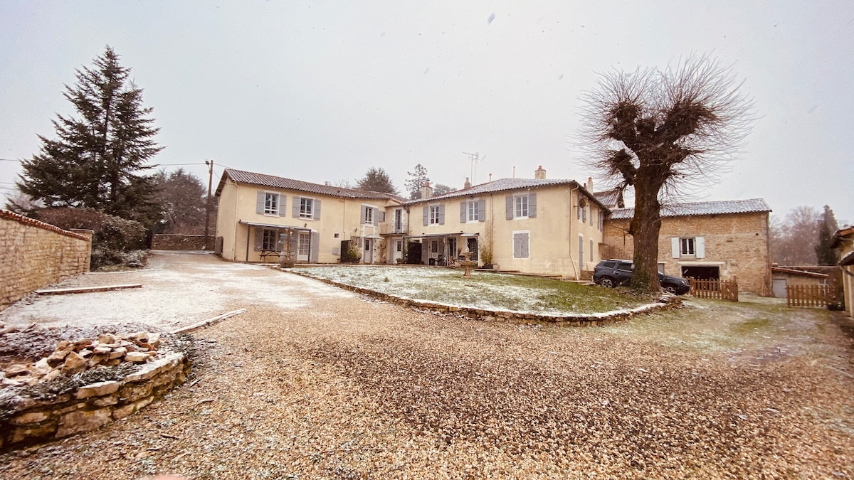 Unser großes Anwesen mit 4 Cottages klassifiziert 3 Sterne in möblierten touristischen Eigenschaften, umgeben von Hängen und Wäldern, befindet sich in Champagne und Fontaine, in einer herrlich entspannenden Landschaft. Komfortables Ferienhaus bietet einen entspannten Aufenthalt für die ganze Familie: Schwimmbad und seinen Strand mit Liegestühlen, große Räume mit Spielplätzen + Spielzimmer mit Ballpool, Fahrräder. Und im Herbst kommt die Saison der Pilze sehr beliebt in unserer Region! Entspannen Sie in einer ruhigen und friedlichen Umgebung.