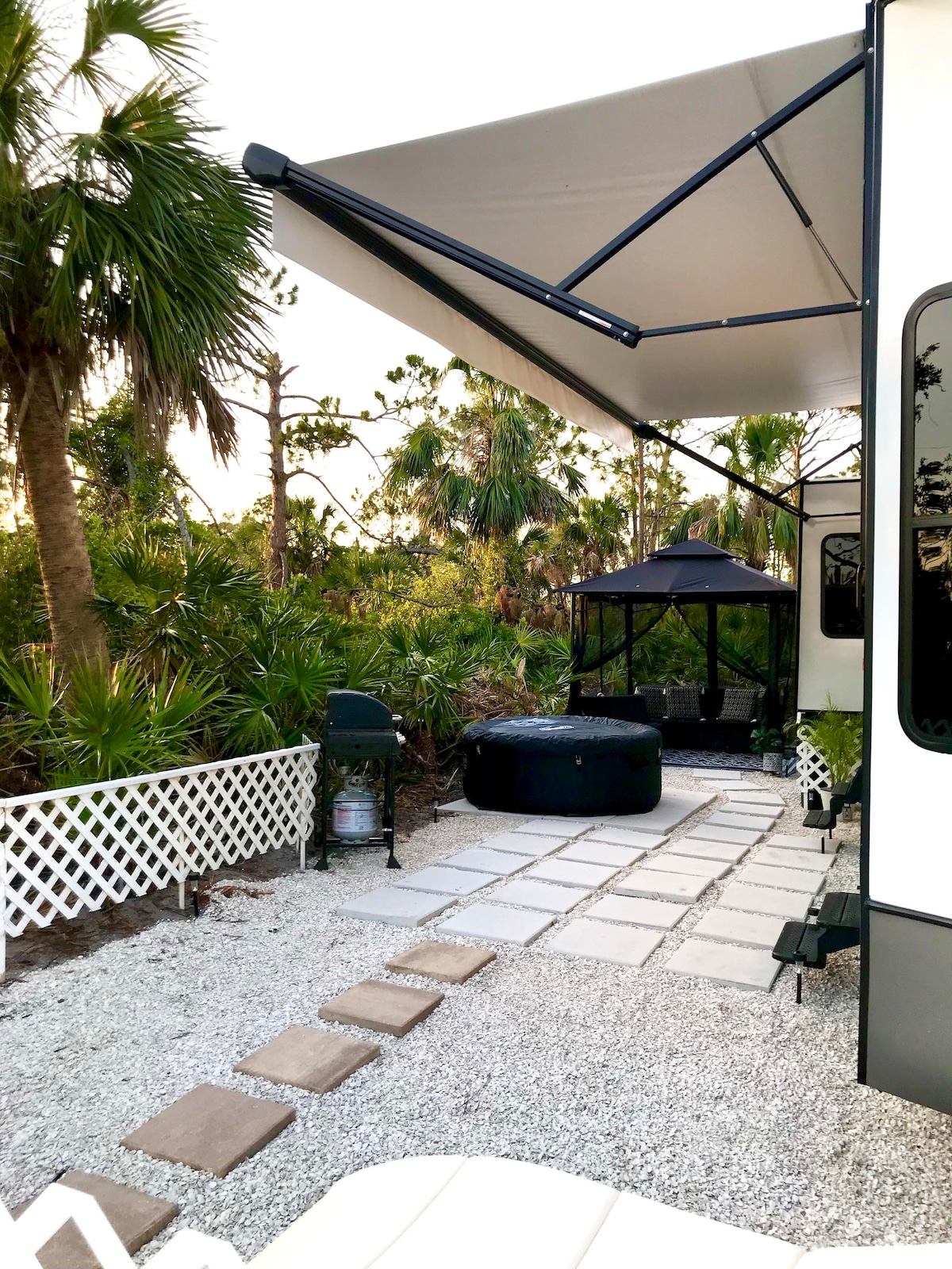 Hundefreundlich & wunderschönes 3-Bett/1 Bad NEUER DESIGNER-RV Minuten vom Sand in gehobenem East Englewood/Port Charlotte entfernt. Toller Whirlpool, riesiger und privater eingezäunter Hof, Moskitonetz-Pavillon, Grill, Kajak und Liegestühle. Superschnelles (200 GBIT/S) WLAN, kostenloses Netflix, Paramount, Peacock und vieles mehr! 50-Zoll HD-Fernseher. Unser NEUER und super sauberer Designer-RV verfügt über eine tolle Klimaanlage, leistungsstarkes Warmwasser, stressfreie Kläranlagen & 7 Schlafplätze. Der ultimative Luxusurlaub! Restaurants/Geschäfte & Nachtleben in Minuten entfernt. Paradies!