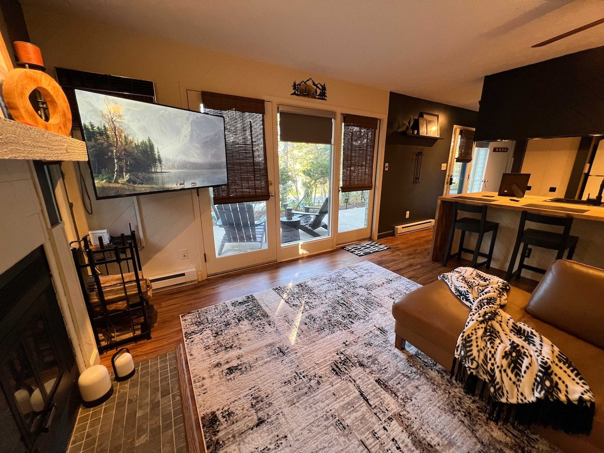 Gemütliche 1BR Wintergreen Wohnung ⛷️❄️ 5 Gehminuten zu den Skipisten, dem Skigebiet und dem Bergmarkt, mit Snowtubing nur wenige Minuten entfernt. Genieße eine voll ausgestattete Küche, erstklassigen Kaffee und Tee, Speiseöle und Gewürze. Entspanne dich am Holzfeuer und genieße einen Smart-TV, schnelles WLAN und Spiele. Komfortables Queensize-Bett im Schlafzimmer sowie ein neues Queensize-Schlafsofa im Wohnzimmer. Private möblierte Terrasse mit ruhigem Blick auf den Wald und nahegelegenem Zugang zum Dorf für Après-Ski.
