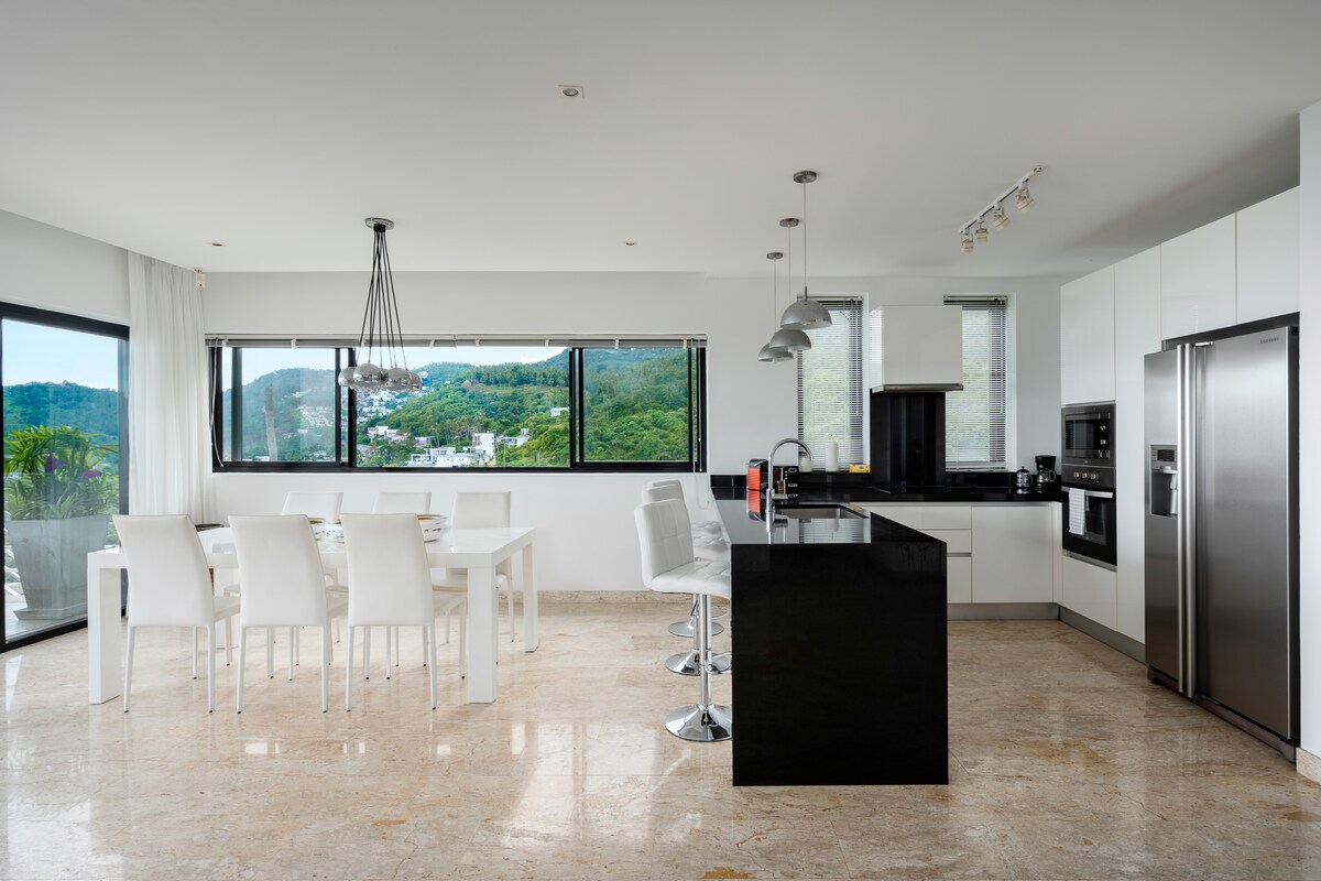 Modern gestaltete Unterkunft mit Dschungelblick und Kino