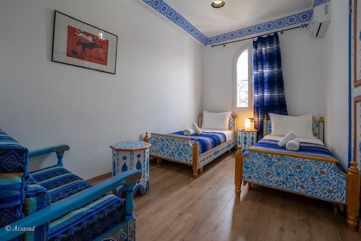 Erlebe Gelassenheit in unserem Terrassenzimmer mit Blick auf die blaue Stadt und die Berge. Entspanne dich in dieser ruhigen Oase mit herrlichem Blick auf die Stadt. Genieße modernen Komfort in einer traditionellen marokkanischen Umgebung. Perfekt für einen ruhigen Rückzugsort während deines Aufenthalts in Chefchaouen. Sehr geeignet für Paare
