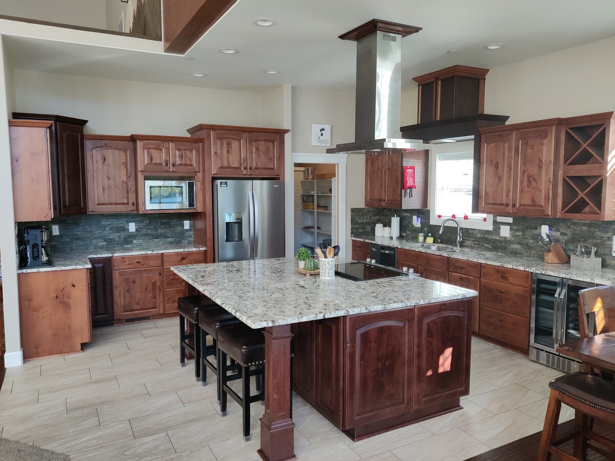 Gönne deiner Familie oder Gruppe einen Panoramablick auf den See in diesem Luxus-Retreat am Lake Chelan. Dieses charmante Haus wurde frisch renoviert und bietet eine raffinierte Mischung aus modernen und Bauernhaus-Designs. Entspanne dich an einem stimmungsvollen elektrischen Kamin im Hauptwohnbereich, einem Bonusraum im Erdgeschoss, der perfekt für Film- oder Spieleabende ist, und einer überdachten Terrasse, damit du dich stilvoll entspannen und grillen kannst! Über einen halben Morgen ruhiges, parkähnliches Gelände mit einem eingezäunten Hof, einem privaten 44' beheizten Pool, Cabana & Whirlpool!