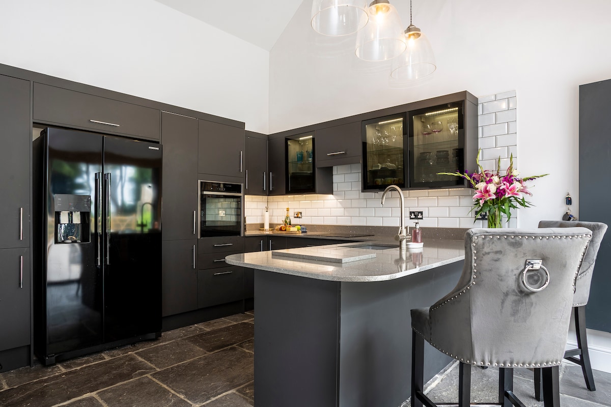 Das kürzlich umgebaute The Stables befindet sich auf dem Gelände eines Herrenhauses und ist ein perfekter Ort für Familien oder kleine Gruppen von bis zu 6 Personen (oder 8 mit Nutzung des Schlafsofas - *zusätzliche Kosten pro Person). Zwei der drei Schlafzimmer haben ein eigenes Bad. Unten führt ein großer Unterhaltungs- und Essbereich zu einer voll ausgestatteten Küche. Ein Hauswirtschaftsraum mit Waschmaschine und Trockner führt zu einem Duschbad. Es gibt eine gemütliche Unterkunft mit großem Fernseher und eine Auswahl an Spielen und Büchern. Französische Türen führen zu einem fabelhaften Sitzbereich im Freien