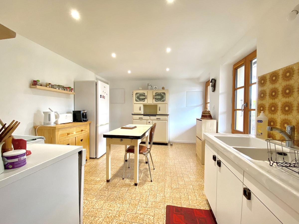 La Belle Vache (la BV), sehr schöne Lage, Loft, Haus von 90 m2, völlig unabhängig, angrenzend an das der Eigentümer in einer wunderschönen natürlichen Umgebung auf 1100 m Höhe. 180°-Blick auf den Jura, im Herzen eines Mittelgebirgsgebiets mit starker kultureller und historischer Identität, dem Haut-Jura. Es liegt auf dem Weg zu sehr schönen Wanderungen, 10 Minuten von den besten Langlaufloipen Frankreichs entfernt. 1 Stunde von Genf, 10 Minuten vom Strand des Sees von Lamoura entfernt.