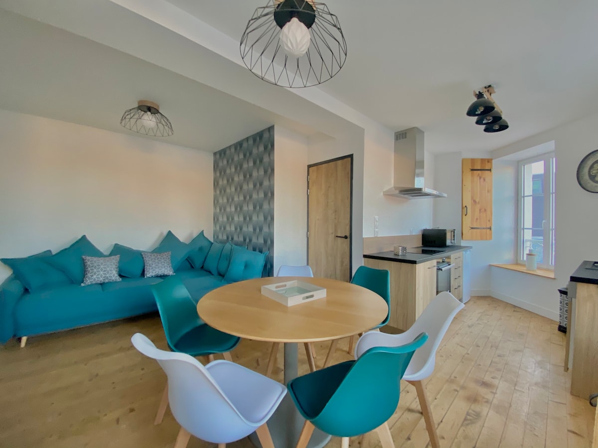 Willkommen in CHERBOURG! Kommen Sie und übernachten Sie in diesem hübschen, 50 m² großen, modernen T2 in einem alten Haus in Cherbourgeoise, das über einen Außenhof verfügt. Die Wohnung befindet sich 800 m vom Bahnhof, 550 m vom Zentrum und 1,7 km von der Naval Group entfernt. In der Nähe von Geschäften zu Fuß (Bäckerei, Lebensmittelgeschäfte). Straße mit Parkmöglichkeiten. Wir freuen uns darauf, Sie in der Wohnung begrüßen zu dürfen 🍀 <Vorzugspreis für wöchentliche und monatliche Vermietungen >