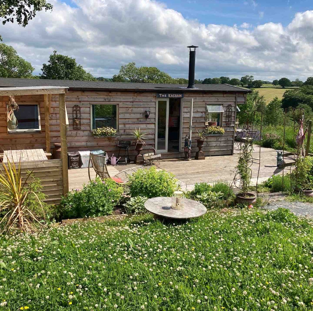 Eine atemberaubende maßgeschneiderte Schäferhütte mit Blick auf die Landschaft im ländlichen Cheshire, 100 m vom Llangollen-Kanal entfernt, in der Nähe der mittelalterlichen Marktstadt Nantwich. Traditionell von außen, modern und zeitgemäß von innen. Ein privater Whirlpool steht dir das ganze Jahr über zur alleinigen Nutzung zur Verfügung. Eine Fülle von ausgezeichneten Pubs in der Nähe – ob zum Essen oder für einen Drink auf einem Kanalspaziergang. In unserem Reiseführer auf unserem AirBnB-Profil findest du Informationen zu Restaurants und Aktivitäten in der Umgebung.