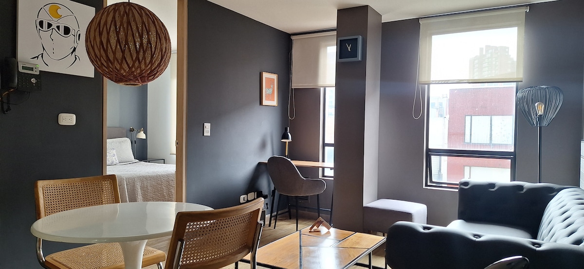 🌟 Willkommen in deinem Rückzugsort im Herzen von Bogotá! 🌆 Nur ein paar Schritte von den besten Touristenattraktionen der Stadt entfernt, ist unsere gemütliche Wohnung perfekt zum Entspannen, Arbeiten oder Erkunden der Stadt. Genieße zwei komfortable Schlafzimmer, ein Wohnzimmer mit TV und einem Schreibtisch, eine voll ausgestattete Küche mit einer Frühstücksbar und ein modernes Badezimmer. Du hast auch Zugang zu fantastischen Gemeinschaftsräumen: eine Dachterrasse mit Aussicht, ein Coworking-Bereich, eine Waschküche und ein Fitnessraum. 🏡 Buche noch heute: Erlebe Bogotá wie ein Einheimischer!