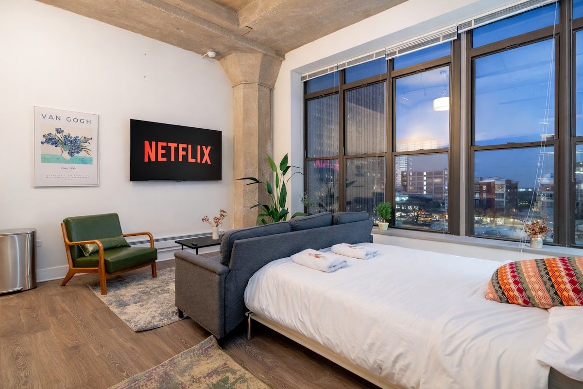 Übernachte im Herzen des Geschehens in dieser einzigartigen Unterkunft! Du bist nur wenige Gehminuten von den berühmtesten Sehenswürdigkeiten Chicagos entfernt. ⚠️ Bitte beachte: An unserem Aufzug werden derzeit Reparaturen durchgeführt. Alle Gäste müssen die Treppe benutzen, um in die Unterkunft zu gelangen. Wir entschuldigen uns für die Unannehmlichkeiten und danken dir für dein Verständnis, während wir unsere einzigartige Unterkunft instand halten!