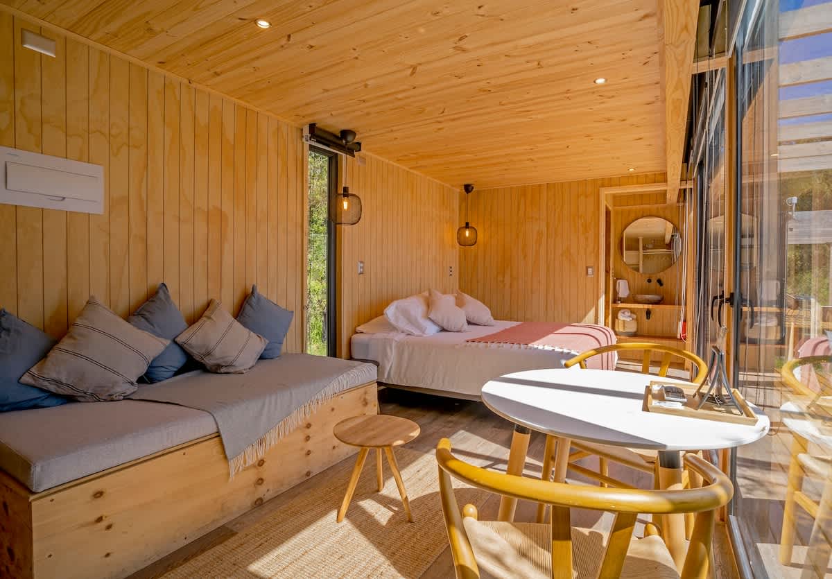 Dieses Home Studio bietet einen idealen Zufluchtsort für diejenigen, die sich von der Zivilisation abkoppeln möchten. In einer privilegierten natürlichen Umgebung gelegen, lädt die Unterkunft Paare ein, eine voll ausgestattete 1-Zimmer-Studio-Wohnung zu genießen, umgeben von der Ruhe und einzigartigen Schönheit von Chiloé. Hier bilden die Weite der Landschaft und die einheimische Flora und Fauna den perfekten Rahmen, um wieder zu sich selbst zu finden und die Natur in ihrer schönsten Form zu erleben.