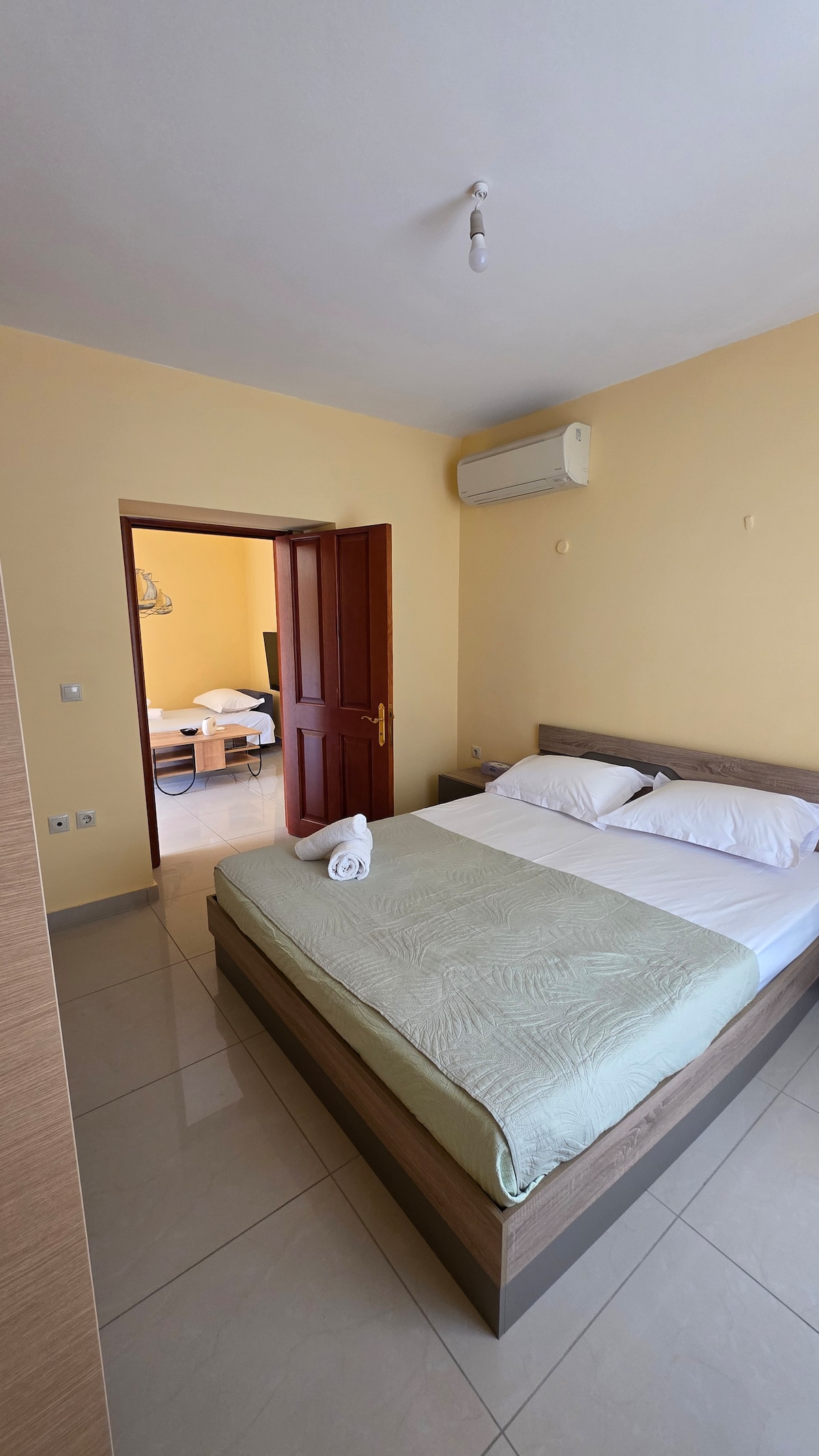 Es ist eine Bodenwohnung in der Uferpromenade von Chios Harbour, genau an der Stelle, an der sich Schiffe von Piräus und der Türkei nähern. Sie ist geräumig und besteht aus 2 Schlafzimmern, Wohnzimmer, Küche und Badezimmer. Das Haus ist neu renoviert und mit 4 Einzelbetten und einem Kinderbett, einem Schreibtisch, Kleiderschränken, einem Elektroherd und einer Mikrowelle, einer Waschmaschine usw. ausgestattet. Es verfügt über eine Terrasse am Ufer, auf der du sitzen und den Blick auf den Hafen genießen kannst.