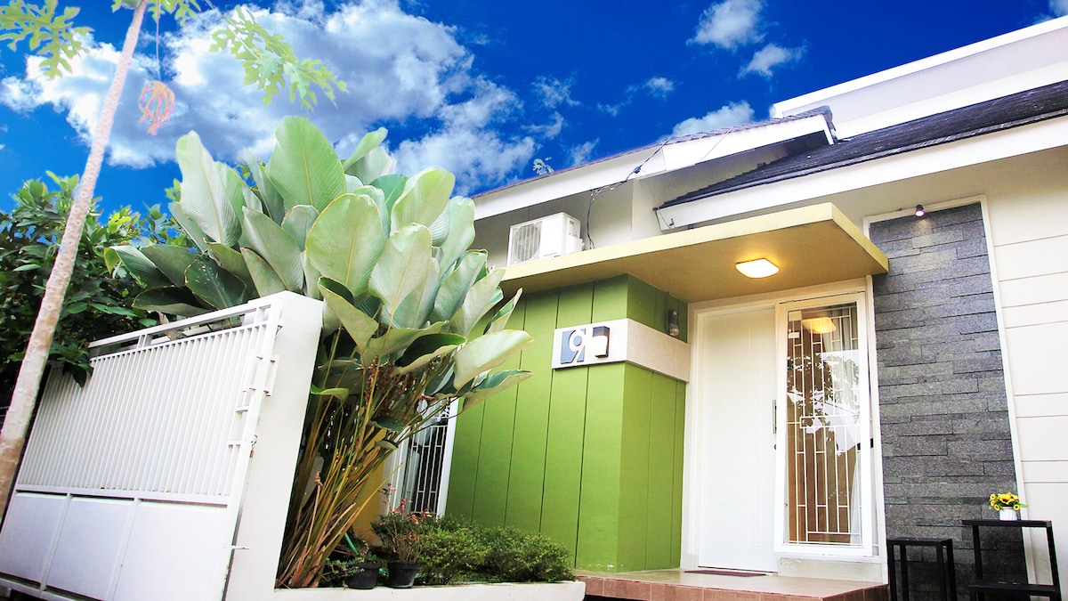 Dieses moderne, tropisch inspirierte Haus verfügt über zwei Schlafzimmer, zwei Badezimmer, eine offene Küche und einen Essbereich. Es befindet sich in der Innenstadt von Sukabumi, 5 Minuten vom Krankenhaus, 7 Minuten von Einkaufszentren und 10 Minuten von trendigen Cafés entfernt. Touristenattraktionen wie der Goalpara Tea Park und die Hängebrücke Situ Gunung erreichst du nach einer 30- bis 40-minütigen Fahrt. Zum Pondok Halimun und Selabintana sind es 20 Autominuten.