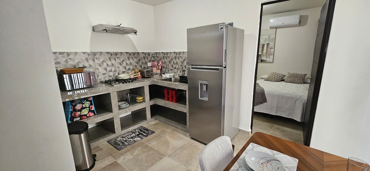 Schöne und geräumige Wohnung in der Nähe des Flughafens von Monterrey. Der Ort ist sehr geräumig, verfügt über ein Wohnzimmer, eine Küche, ein Esszimmer, ein Schlafzimmer, ein komplettes Badezimmer und eine Terrasse mit Grill. - 10 Minuten zum Flughafen - 10 Minuten zum Zentrum von Apodaca - 15 Minuten nach Pesquería - 20 Minuten bis zum Zentrum von Monterrey