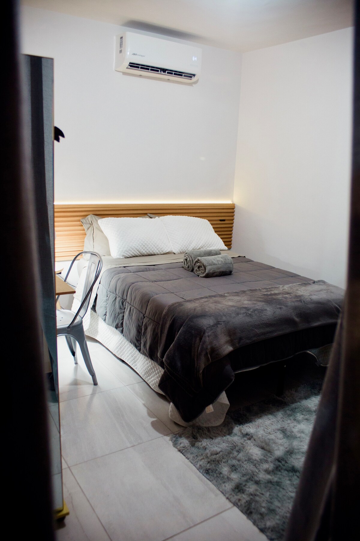 Voll ausgestatteter und exklusiver Raum für Gäste. WIR BIETEN RECHNUNGSLEGUNG Umgeben von Kinos, Restaurants, Cafés, Supermärkten Ausgestattete Küche, klimatisiertes Schlafzimmer, komplettes Badezimmer, Kabel-TV, Internet, Smart-TV A - 10 Minuten vom Sportzentrum Tigres 15 Minuten von Rectoria UANL, Estadio Tigres und Estadio Mobil Super 20 Minuten vom Flughafen Aeropuerto del Norte und 35 Minuten vom internationalen Flughafen MTY