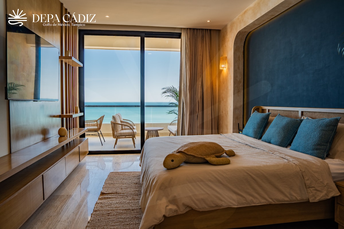 Genieße und entspanne dich in einem luxuriösen Aufenthalt mit Blick auf das Meer im Mittelmeer 2A in einem sehr exklusiven und privaten Bereich mit 24-Stunden-Sicherheitsdienst innerhalb der Velamar-Fraktionation, 20 Minuten vom Flughafen Tampico entfernt. Die Wohnung ist komplett ausgestattet, um deinen Aufenthalt unvergesslich zu machen. *Wir haben: - Schreibtisch - Schlüsselkasten und Safe. - Schlafzimmervermietung -Rental of Toldo 3x3 - Terrasse mit rustikalem Familientisch - Waschzentrum - Toaster - Keine Besuche -