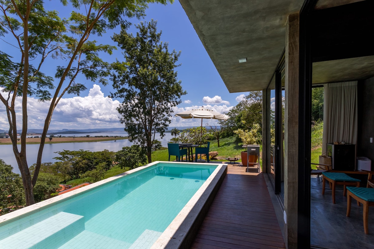 Chalé mit Blick auf die Serra da Canastra. Stell dir vor, du wachst mit dem Rauschen der Natur und einem unvergesslichen Sonnenaufgang direkt in deinem Fenster auf. Unser neu gebautes Chalet ist der Serra da Canastra zugewandt und bietet ein einzigartiges Erlebnis, sich mit der Natur zu verbinden — ohne auf Komfort zu verzichten. Ideal für Paare, die Unterkunft verfügt über: Gemütliches Bett Wanne Konditionierung Ausgestattete Küche Privates Badezimmer - Direkter Zugang zum Damm WLAN Badewanne mit Solarheizung*