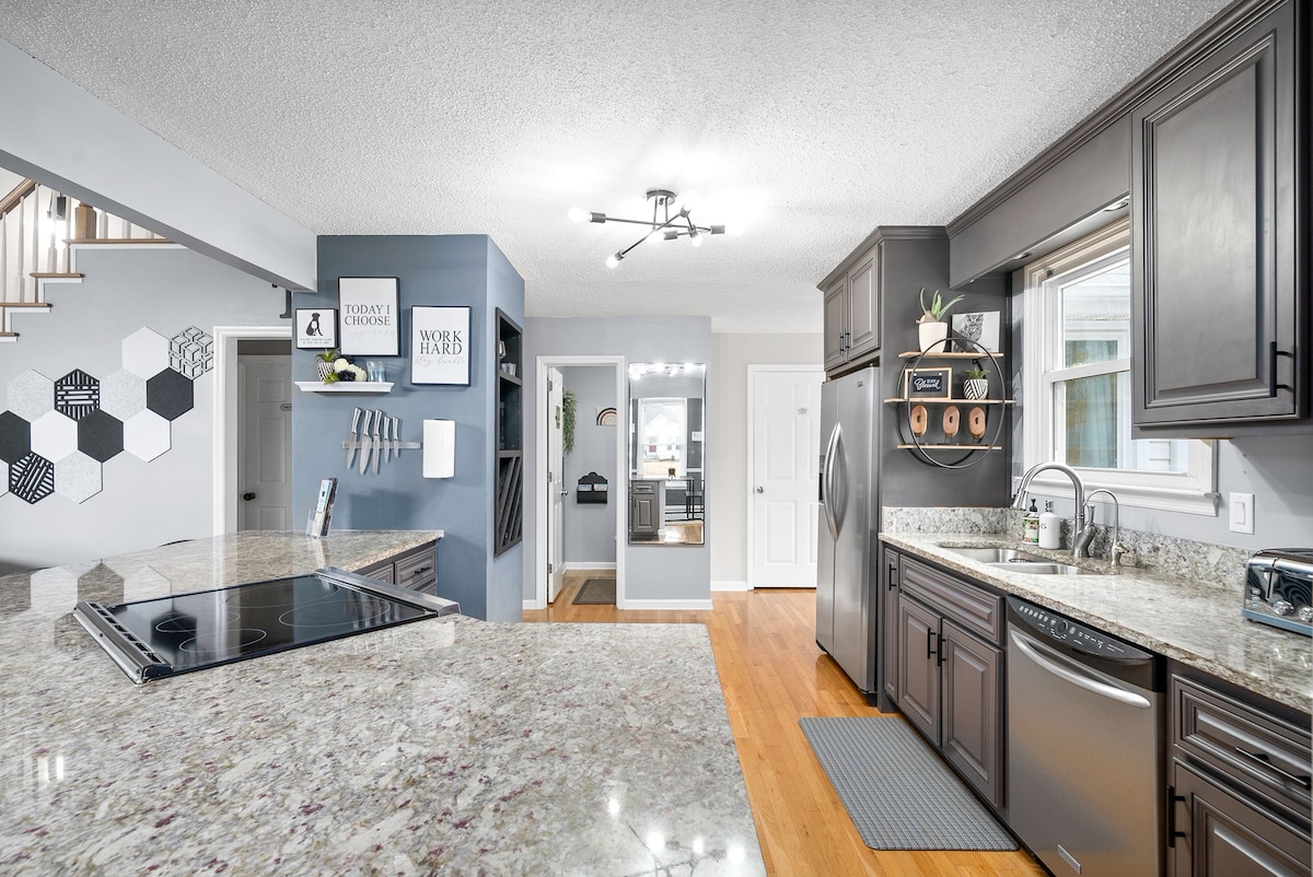 Unglaubliche Lage im Herzen des schönen historischen Emerald-Viertels und der Innenstadt von Clarksville! Dieses perfekt renovierte Haus versetzt dich mit 2 Kingsize- und 1 Queensize-Bett in die Zeit der frühen 1900er Jahre zurück. Genieße es, in der Nähe aller wichtigen Restaurants in der Innenstadt, der F&M Bank Arena und des Flusses zu sein, während du einen ruhigen, versteckten Rückzugsort im Herzen der Stadt nutzt! Fahre mit den bereitgestellten Fahrrädern durch die malerische Innenstadt! Weniger als 15 Meilen nach Ft. Campbell und 45 Meilen zur Innenstadt von Nashville