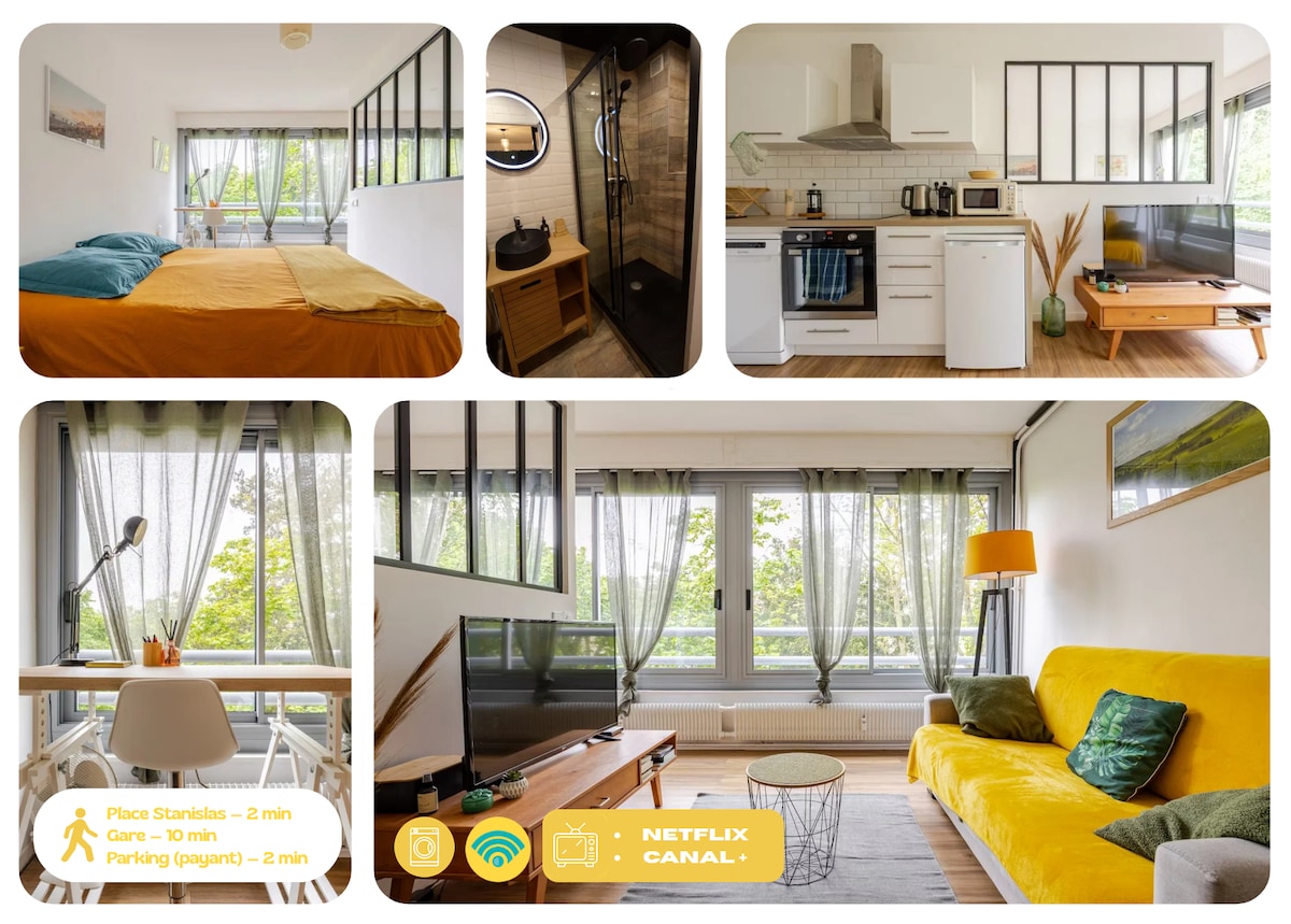 Nutze diese erstklassige Lage, um Nancy während deines Aufenthaltes zu Fuß zu besuchen. Parkplätze sind kostenlos und leicht zu erreichen, was in dieser Gegend ein großer Komfort ist. Der Place Stanislas liegt 150 m zu Fuß entfernt und alle Sehenswürdigkeiten der Stadt liegen weniger als 5 Gehminuten entfernt. Komfortable Unterkunft, komplett renoviert im Jahr 2024, in einer ruhigen, sicheren Residenz. - Queensize-Bett 160 x200 cm - SMART-TV mit TV-Kanälen und Anwendung - Glasfaser und WLAN