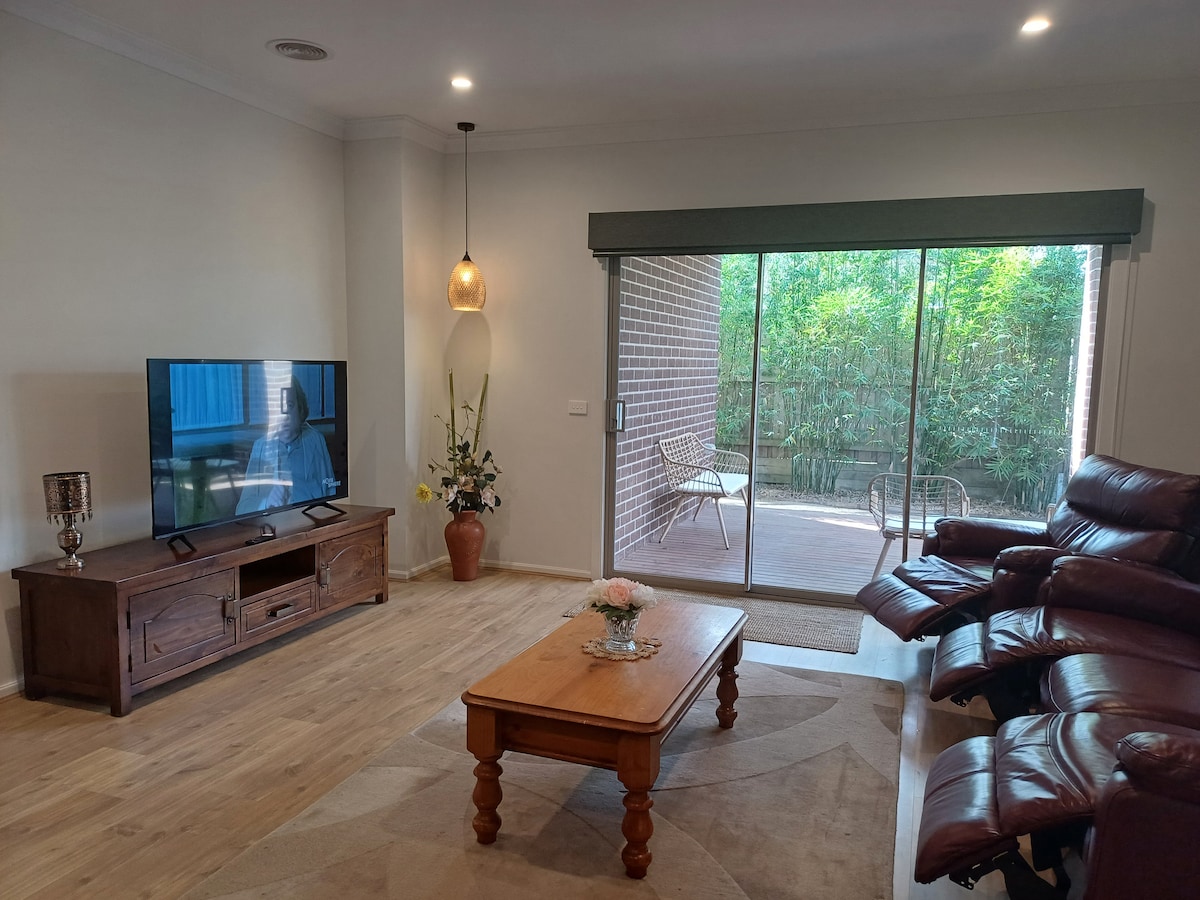 Comfortable & spacious family home surrounded by bamboos, wisteria, fruit trees & rosses. 2 living areas with TV & reclining leather sofas in the back & front ends provide their own space to kids & parents. Alfresco has small BBQ & outdoor furniture. Backyard is fenced & gated for kids' safety Master bedroom has walk in wardrobes, toilet & shower. 5 minutes' drive to supermarket, restaurants & cafes. Comfy beds, lots of pillows & fluffy towels. Parking for 4 cars in double garage & driveway.