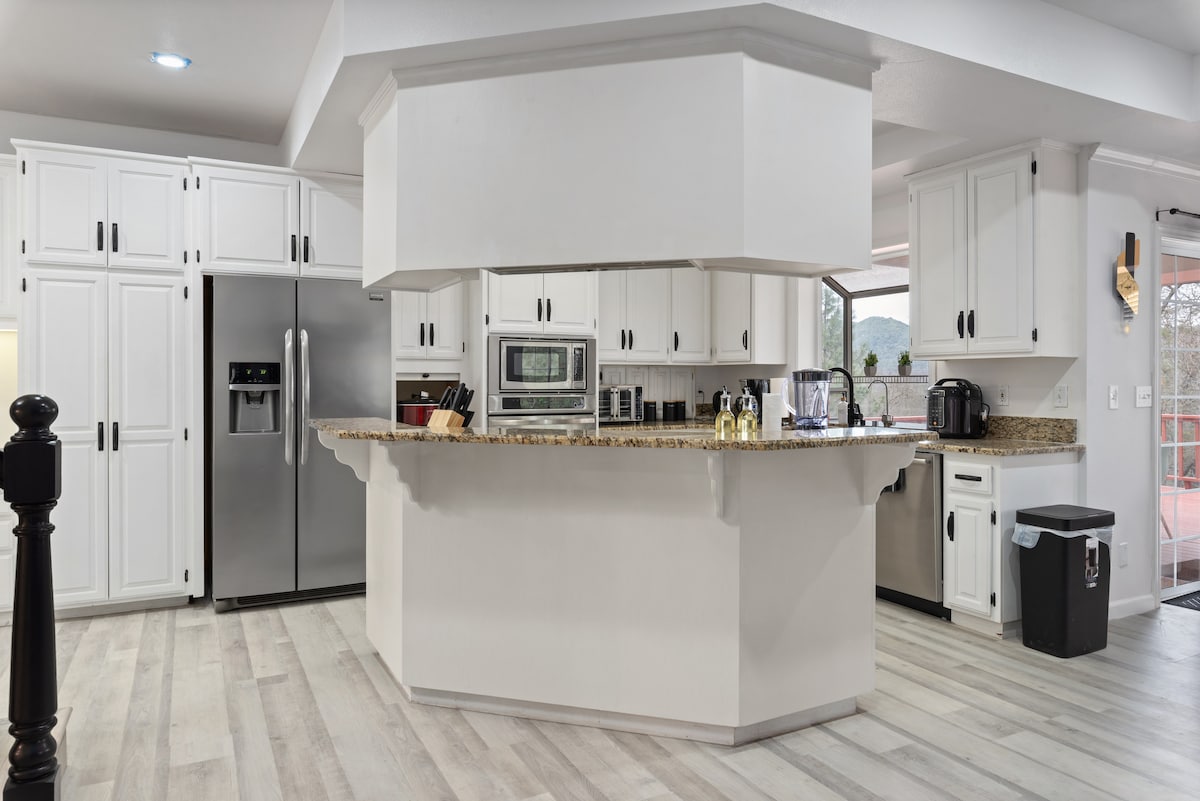 Willkommen in der Casa Roca. Unsere gemütliche Hütte in Coarsegold, CA, nur 30 Meilen vom Yosemite-Nationalpark entfernt. Umgeben von atemberaubenden Felsformationen bietet unsere Hütte einen Panoramablick und alle Annehmlichkeiten für einen perfekten Bergurlaub. Genieße die rauchfreie Feuerstelle, den erstklassigen Traeger-Grill und die privaten Wege auf unserem 17 Hektar großen Grundstück. Mit 2 Schlafzimmern, 2 Badezimmern und einer voll ausgestatteten Küche bietet unsere Hütte bequem Platz für bis zu 8 Gäste.