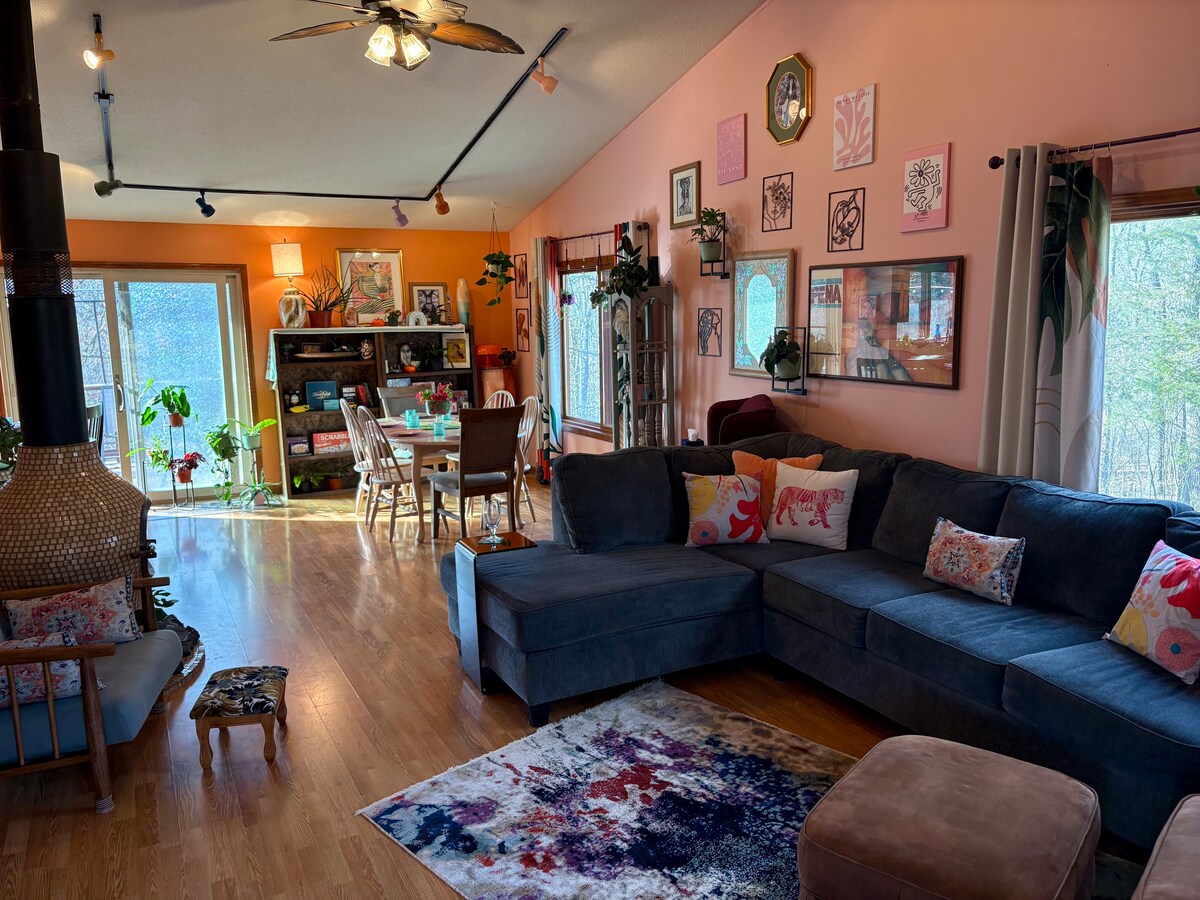 Entspanne dich mit der ganzen Familie in diesem friedlichen, geräumigen, privaten Haus in einer ruhigen, grünen Gegend. Weniger als 1 Meile von der I-70 und 4 Meilen von der Innenstadt/dem Campus/MU und den Boone Krankenhäusern entfernt. Haustier- und kinderfreundlich mit einem großen, sicher eingezäunten Garten und einer Zementterrasse mit Feuerstelle, Holzkohlegrill, Gartenmöbeln und Segeltuchschatten. Das gemütliche, moderne Interieur verfügt über 40 Originalgemälde des Eigentümers und einen elektrischen Kamin.