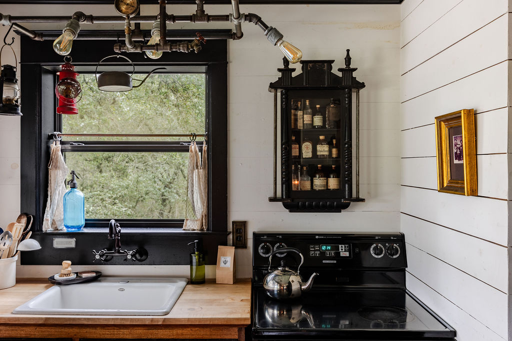 Die Moonshiner Cabin ist ein perfekt kuratierter, handgebauter Schatz. Lass dich in eine Zeit von Cocktails und Jazz zurückversetzen. Die Besitzer haben diese Hütte liebevoll kuratiert, indem sie die Prohibitionszeit und ein bisschen Steampunk als Inspiration genutzt haben, und wir garantieren, dass es nichts Vergleichbares gibt! Nur einen kurzen Abstecher von der Stadt entfernt, aber eingebettet zwischen den Eichen auf 1,5 Hektar, hat diese Hütte alles, was du vom modernen Leben benötigst, aber den Charme und die Romantik eines anderen Jahrhunderts.