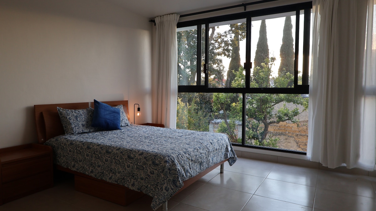 Stell dir vor, du wachst in einem gemütlichen, sonnendurchfluteten Raum auf, nur wenige Minuten von der Innenstadt von Comitán entfernt, umgeben von der Natur und einem Panoramablick auf die Ebenen von Meseta Comiteca-Tojolabal. Unsere voll möblierte Mini-Wohnung mit eigenem Eingang ist der perfekte Ausflug für den umweltbewussten Reisenden und bietet allen modernen Komfort, den du brauchst.
