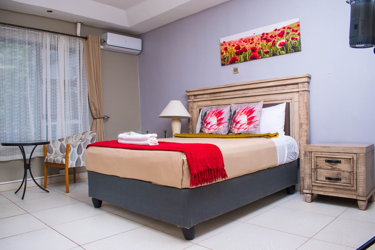 Die Fairview Villa ist ein ruhiges, funkelndes, neu gebautes, modernes zweites zweites zweites Zuhause und liegt in der Nähe des Westgate-Einkaufszentrums an der Chinhoyi Road. Es bietet eine luxuriöse Note. Sichere und komfortable Unterkunft und sehr geeignet für Familien auf Urlaubs- oder Geschäftsreisen. ***Fairview Villa verfügt über einen Koch gegen einen Aufpreis. Wir bieten auch Abholung vom Flughafen und Autovermietung zu erschwinglichen Preisen.