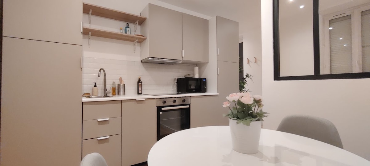 Bienvenue dans notre charmant appartement de 2 pièces dans le village historique, situé aux pieds des magnifiques jardins de l'imaginaire dans une rue très calme ! Avec une chambre confortable, une salle de bain moderne et une lumineuse pièce de vie dotée d'une cuisine entièrement équipée, vous vivrez une expérience authentique. Le linge est fourni, donc vous n'avez qu'à vous détendre et profiter de votre séjour. Réservez dès maintenant pour un moment de détente dans cet endroit calme.