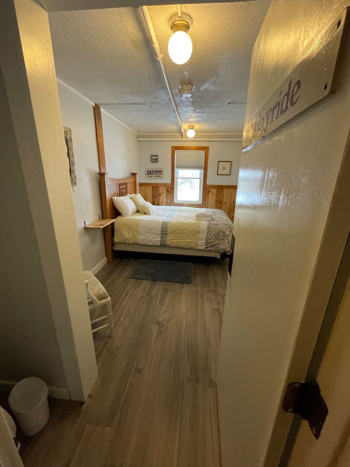 With a comfortable queen bed, Hayride shares two baths and is on the second floor of the Round Hearth Café & Marketplace! Three miles from Stowe Village and four from Stowe Mountain Resort, a complimentary (seasonal) shuttle will pick you up and drop you off right out front. This is your place to stay for an active vacation in Stowe. We hope you will enjoy free coffee and food discounts by the fire right downstairs during our regular café hours!