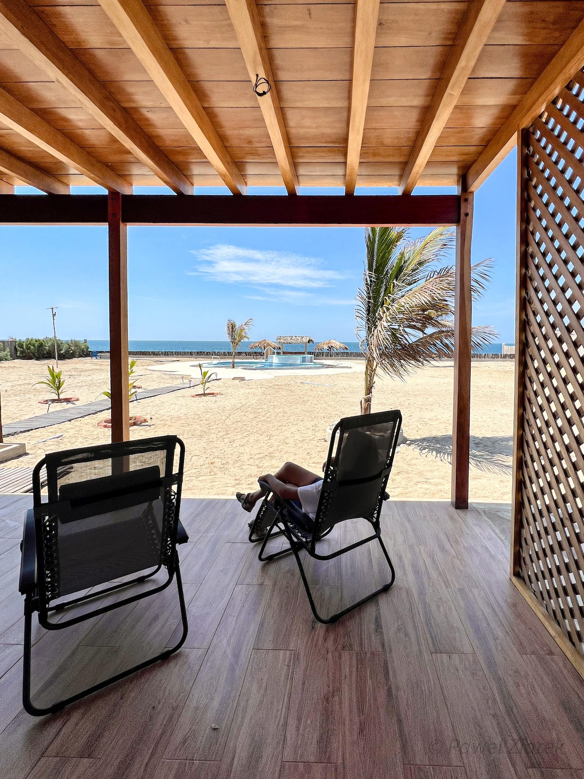 Wache am Meer in Canoas de Punta Sal auf. Private Bungalows mit bequemen Betten, Klimaanlage, WLAN, privater Terrasse, Pool, direktem Strandzugang, atemberaubender Aussicht und der Ruhe, die du brauchst. Perfekt für Paare, Familien oder Freunde.
