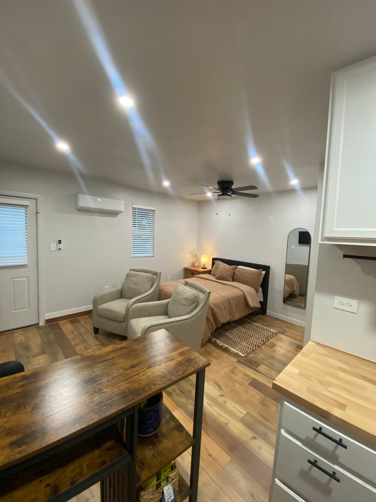 NUR ERWACHSENE Entspanne dich stilvoll in unserer Casita am Pool, eingebettet auf einer Mikrofalle in der Nähe der Randolph Air Force Base. Perfekt für Piloten in Ausbildung, Reisekrankenschwestern oder Kurzzeitaufenthalten. Genieße bequemen Zugang zum Ausgangspunkt oder zu lokalen Aktivitäten, während du dich in deiner eigenen privaten Oase entspannst. Komplett mit dem gleichen Komfort wie zu Hause, einschließlich eines gemütlichen Queensize-Bettes, eines Einzelbettes, eines kompletten Badezimmers und einer Küchenzeile, offenem Zugang zum Pool. Dein Aufenthalt in der Casita verspricht Entspannung, Ruhe und etwas texanischen Spaß!