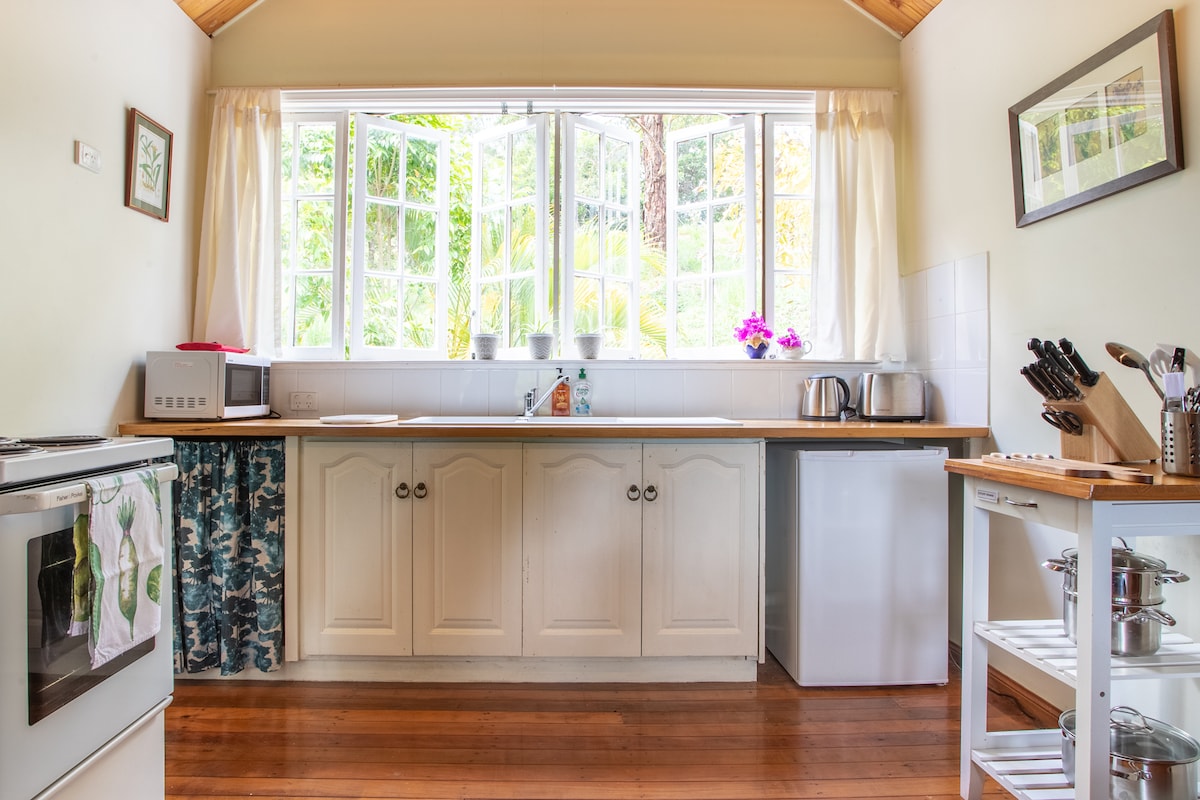Das Rangeview Cottage ist ein wunderschönes, 100 Jahre altes, traditionelles Queenslander Cottage, das in eine ruhige Ecke unseres 2 Hektar großen, ländlichen Wohngrundstücks verlegt wurde. Es liegt in einem eigenen Garten, umgeben von alten Bäumen, üppigen Pflanzen und mit herrlichem Blick auf den Berg Cooroy. Das Ferienhaus wurde komplett renoviert und liebevoll mit einer vielseitigen Mischung aus Vintage- und Designerstücken kuratiert. Die Grundgebühr gilt für 2 Gäste. Zuschlag für zusätzliche Gäste. Keine Kleinkinder oder Kinder unter 12 Jahren.