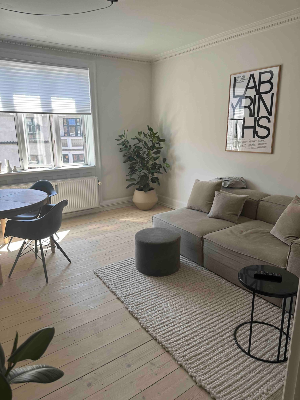 The apartment is located in inner Copenhagen in the middle of the vibrant shopping district. It is facing the courtyard, but with an open window you can still hear the rich city life in the background The neighborhood is filled with cafes, bars and shopping opportunities. The famous street "Strøget" is an arms length from the apartment, and runs through the entire midtown. It is perfect for a couple. It has a 200 x 180 bed in the bedroom and a new sleep sofa.