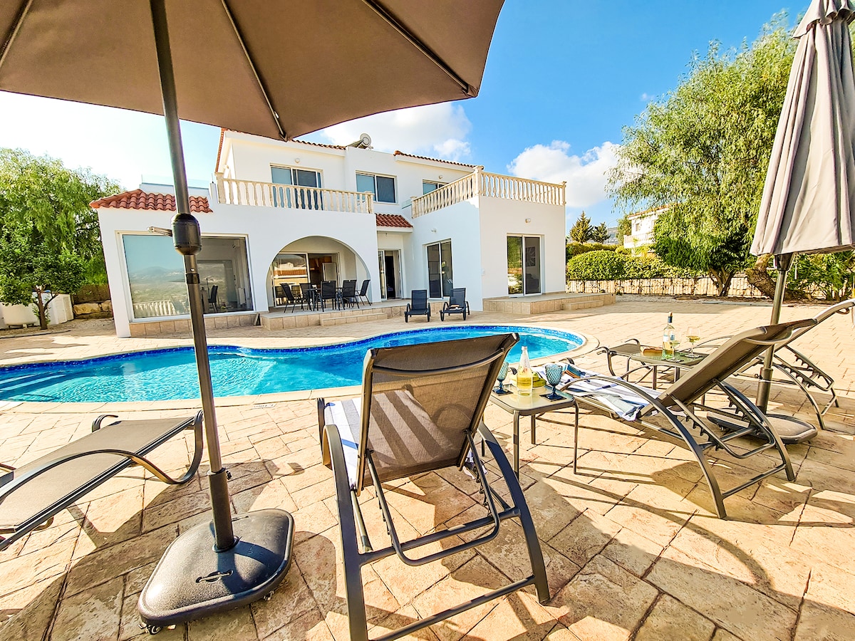 Unsere komplett renovierte und neu möblierte moderne Villa mit 3 Schlafzimmern bietet dir unvergessliche Urlaubserinnerungen. Die Villa bietet Platz für 8 Personen und ist mit allem ausgestattet, was du brauchst. Die Aussicht vom privaten Poolbereich und allen Veranden ist atemberaubend! Es gibt Sitzbereiche an allen schönen Aussichtspunkten, damit du diese optimal nutzen kannst, während du deine Grills, Getränke usw. genießt. Die Villa befindet sich in Peyia, in der Nähe der berühmten Coral Bay und unweit vom Touristengebiet Kato Paphos entfernt.