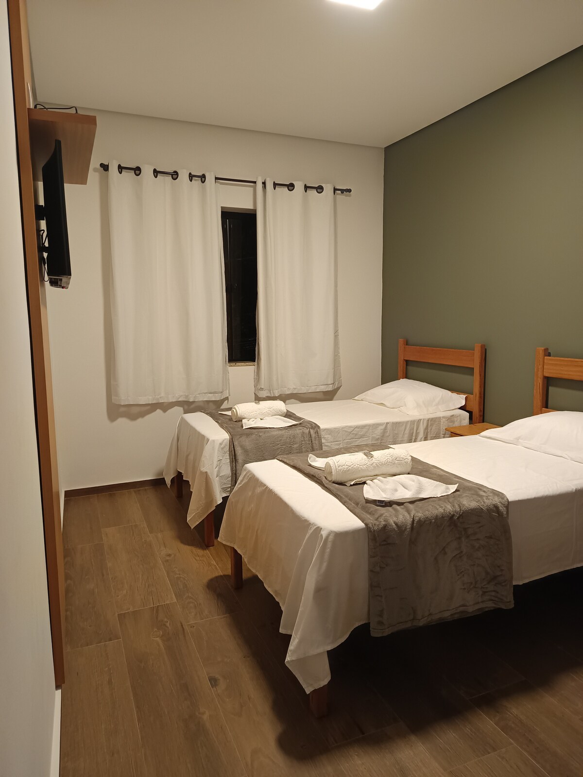 Nossa Suíte Solteiro Duplo acomoda 2 pessoas com 2 camas de solteiro.