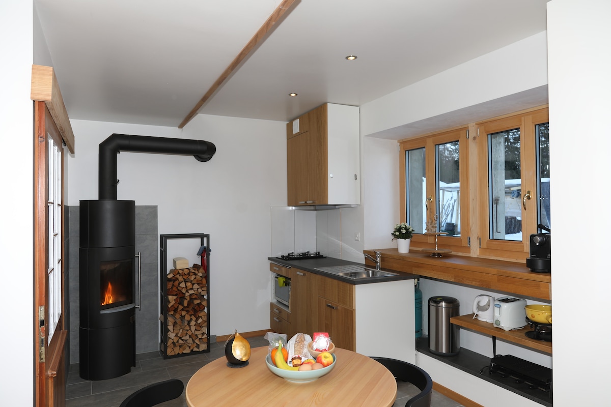 Kleines alpines Chalet aus dem 17. Jahrhundert, renoviert in einer Duplex von 40 m ², umgeben von viel Grün, und mit ihrer schönen überdachten Terrasse, die du im Charme der Vergangenheit ländlicher Natur reist, in der Nähe von Wanderungen und 6 Minuten vom Zentrum und den Skipisten entfernt. Auf demselben Grundstück, seinem großen Bruder, kann das „Schweizer Alpenchalet mit authentischem Charme“ Reisende in größeren Gruppen zufriedenstellen.